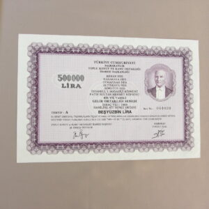 TOPLU KONUT VE KAMU ORTAKLIĞI İDARESİ BAŞKANLIĞI 500.000 LİRA GELİR ORTAKLIĞI SENEDİ
