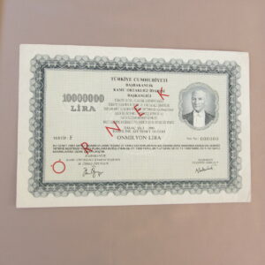 BAŞBAKANLIK KAMU ORTAKLIĞI İDARESİ 10MİLYON LİRA ÖRNEK ORTAKLIK SENEDİ