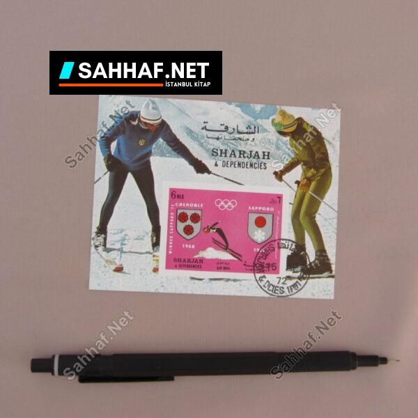 SHARJAH JAPONYA BLOK PUL Japon temalı Sharjah blok pulu (Birleşik Arap Emirliklerinde bir emirlik). Üzerinde olimpiyat logosu ve Sharjah yazıyor. Kondisyon: Yeni [0] Boyut: 14×8 cm