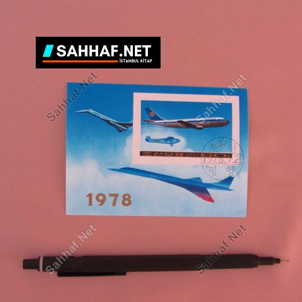 UÇAK TEMALI BLOK PUL Concorde ve başka uçak resimleri olan havacılık temalı blok pulu, 1978 yılı. Kondisyon: Yeni [0] Boyut: 10×7 cm