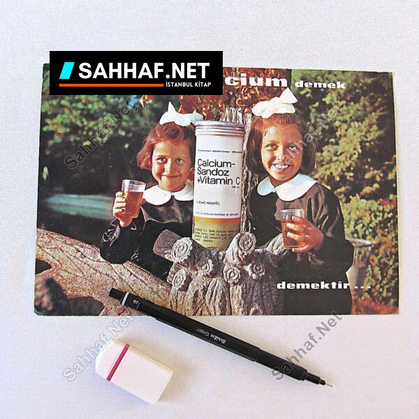 SANDOZ CALCİUM-SANDOZ İLAÇ BROŞÜRÜ Sandoz ilaç firması CALCİUM SANDOZ tanıtım broşürü. Postadan geçmiş, Levend 10 kuruş damgalı, karton, 1960’lar. Kondisyon: İyi [7] Boyut: 24×16 cm