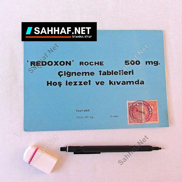 ROCHE REDOXON İLAÇ BROŞÜRÜ Roche ilaç firması REDOXON ilaç tanıtım broşürü. Karton, 1950 veya 60’lar. Üzerinde 2 kuruş belediye ilan pulu ve 1 kuruşlul damga pulu var, 2 kuruşluk belediye il....