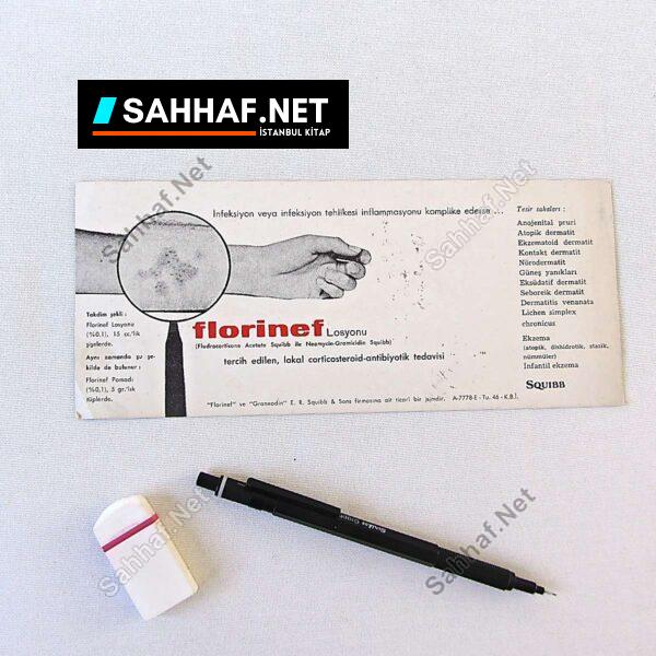 SQUIBB FLORİNEF İLAÇ BROŞÜRÜ Squibb ilaç firması FLORİNEF ilaç tanıtım broşürü. Arkasında 1 kuruşluk damga ve 1 kuruşluk belediye ilan pulu var. Karton, 1950 veya 60’lar. Kondisyon: İyi [7] ....