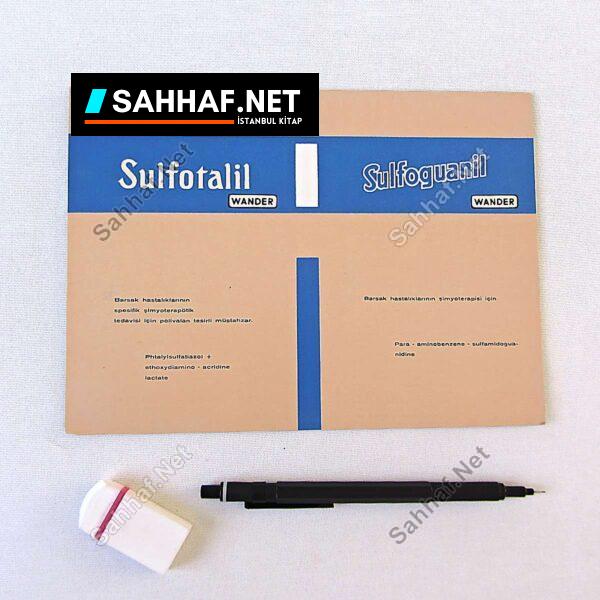 WANDER SULFOTALİL SULFOGUANİL İLAÇ BROŞÜRÜ Wander ilaç firması SULFOTALİL ve SULFOGUANİL ilaç tanıtım broşürü. Postadan geçmiş, üzerinde 10 kuruşluk damga var.Karton, 1950 veya 60’lar. Kondi....