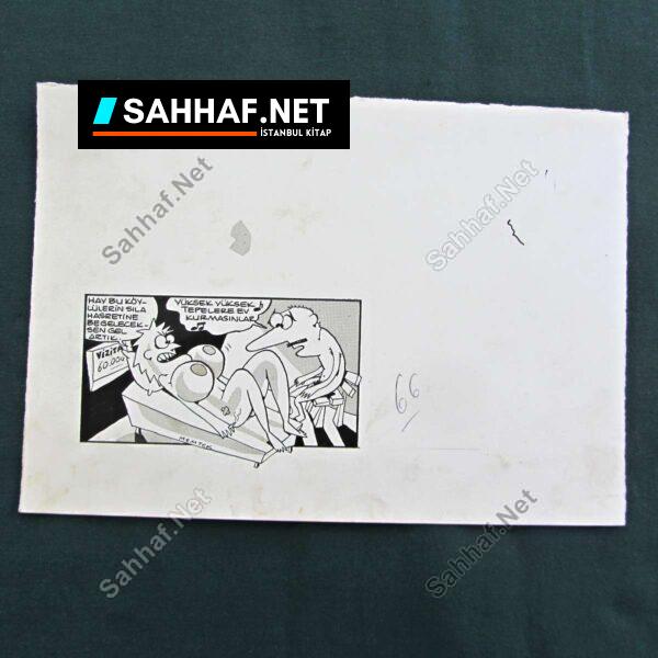 ORİJİNAL KARİKATÜR Bi şii söölemek istiyom. Sizi çok güzel bi kadın yaparsam, bana bi kere vercek misiniz? Hayır yaani mecbur diilsiniz. İsterseniz verirsiniz. Karton üzerine çini mürekkebi, dergi....