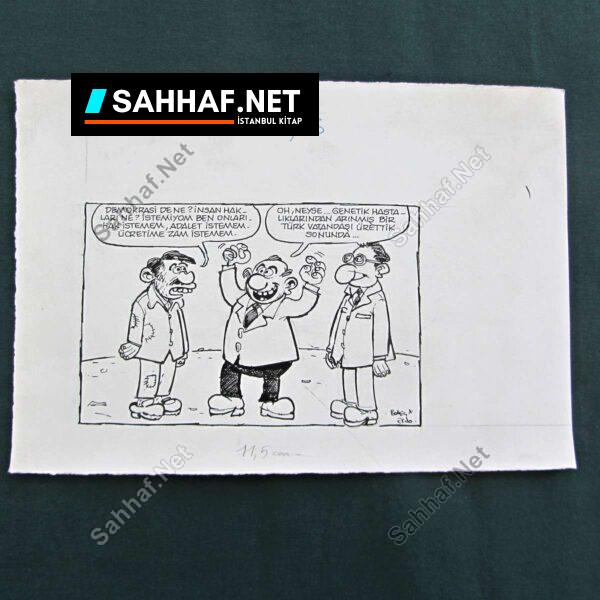 ORİJİNAL KARİKATÜR Demokrasi de Ne? İnsan hakları ne? İstemiyom ben onları. Hak istemem, adalet istemem. Ücretime zam istemem. Karton üzerine çini mürekkebi, dergide yayınlanmış, el çizimi orijina....