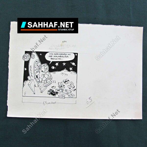 ORİJİNAL KARİKATÜR Hiç girmesek mi abi kalabalığa benziyo… Karton üzerine çini mürekkebi, dergide yayınlanmış, el çizimi orijinal karikatür. 1980 sonları veya 1990 başları. (Belirtilen ebatl....