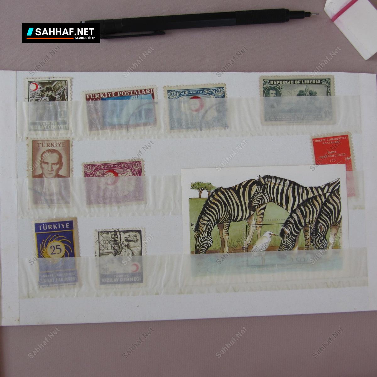 10 adet karışık pul lotu. 1 Atatürk, 3 Kızılay, 1 zebra temalı blok pul, Kara Harb Okulunun 125.yılı, Ankara Siyasal Bilgiler Fakültesi, Ankara İktisat Fakültesi ve Republic of Liberia pulları.