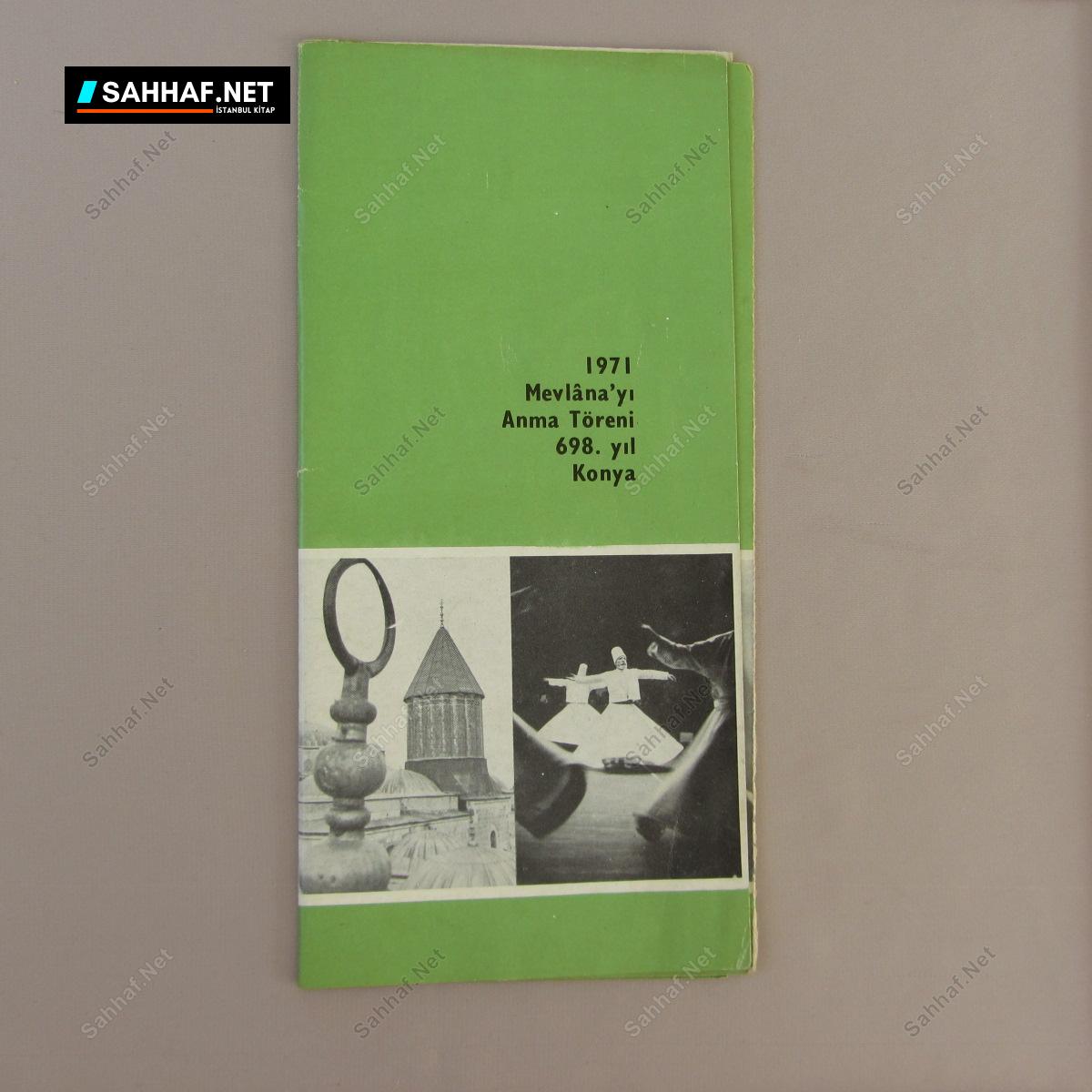 1971 Yılı Mevlana’yı Anma Töreni 698.yıl Konya broşür. Katlanır 6 yapraklı 12 sayfadan oluşuyor. Yarım asırdan eski nadir bir broşür.