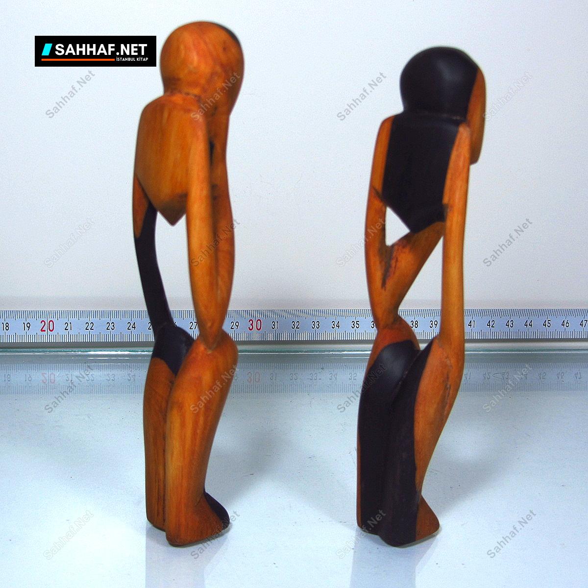 Abanoz ağacından, elişi, Afrika kökenli düşünen adamlar figürü. Simetrik yapılmış, ağacın hareli yapısı da güzel bir hava katmış. Yükseklik: 15 cm