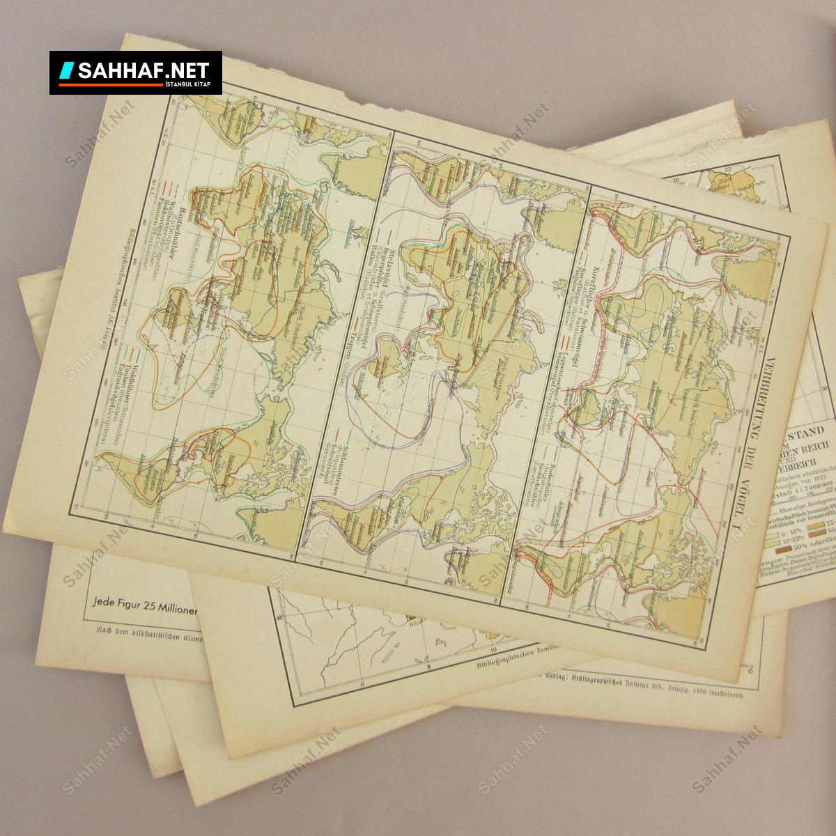 1930’larda basılmış bir kitaptan ayrılmış 5 adet harita. Dünya, Avrupa, Almanya, Avusturya haritaları. Toplam 5 yaprak