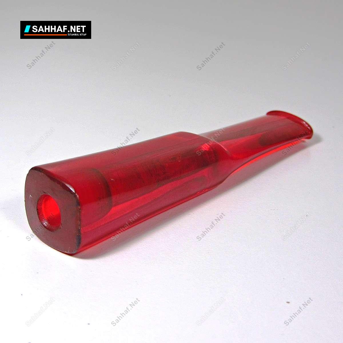 Çok hoş kırmızı renkte şeffaf bir ağızlık. Malzemeyi bilemiyorum, ateş kehtribara benziyor, akrilik de olabilir. Malum, piyasada ateş, damla, sıkma kehribar adı altında polyester tesbihler satılıyor, hepsi birbirine benziyor. Katalin, akrilik veya polyester de olabilir. O yüzden fiyatı alıcının lehine tuttuk. Ne olursa olsun güzel bir ağızlık. Boy: 10 cm