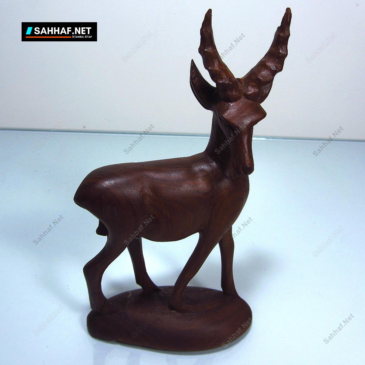 Elişi, ahşap antilop figürü. Çok sert bir ağaçtan oyulmuş, muhtemelen afrika kökenli bir ürün. Oldukça güzel bir işçiliği var, zarif ve asil bir duruşa sahip. Çok dikkatli bakmakdıkça (arkasını evirip çevirmek gerekiyor görmek için) iki tane kusuru var; alt kaide arka kısımdan yapıştırılmış ve boynuzların arka kısmında 1 cm kadar parça kopmuş. Dediğim gibi, arkasına bakmadan hiç belli olmuyor. Yükseklik: 15 cm