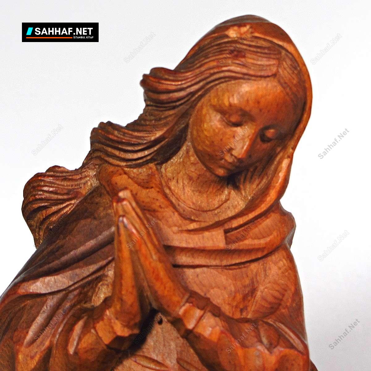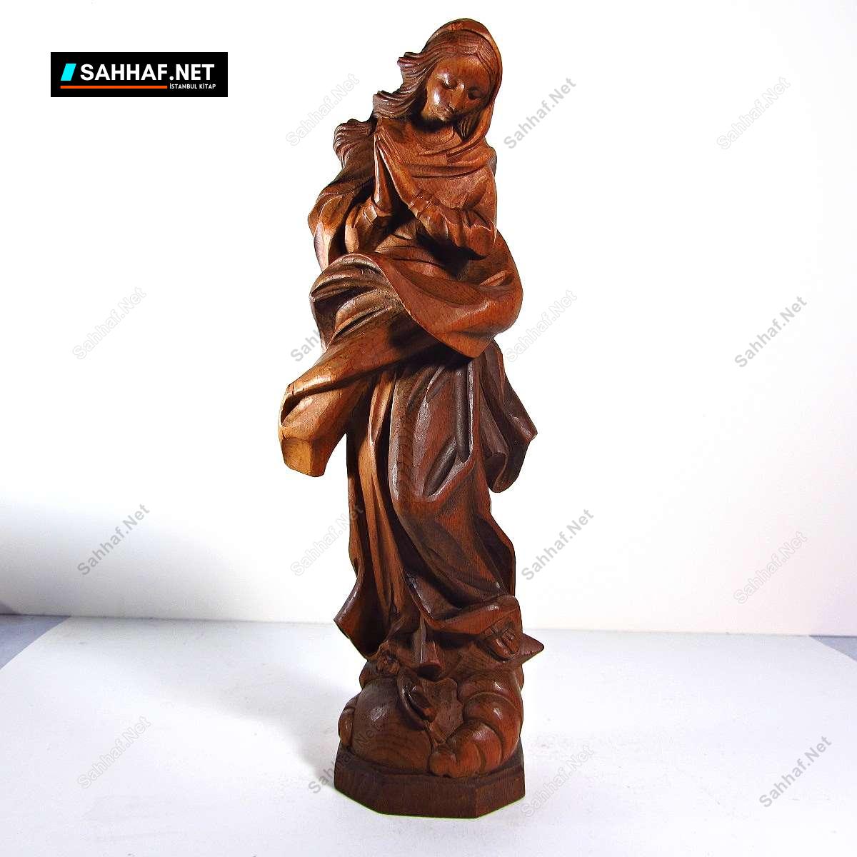 1969 yılı yapımı olağanüstü güzellikte ahşap malzemeden elişi Meryem heykeli. Gerçek bir sanat eseri, inanılmaz güzel ve elli yaşında bir eser. Sadece başörtüsü kısmında minik (2 mm) bir atığı var. Tek parça ahşaptan yapılmıştır. Yükseklik: 30 cm