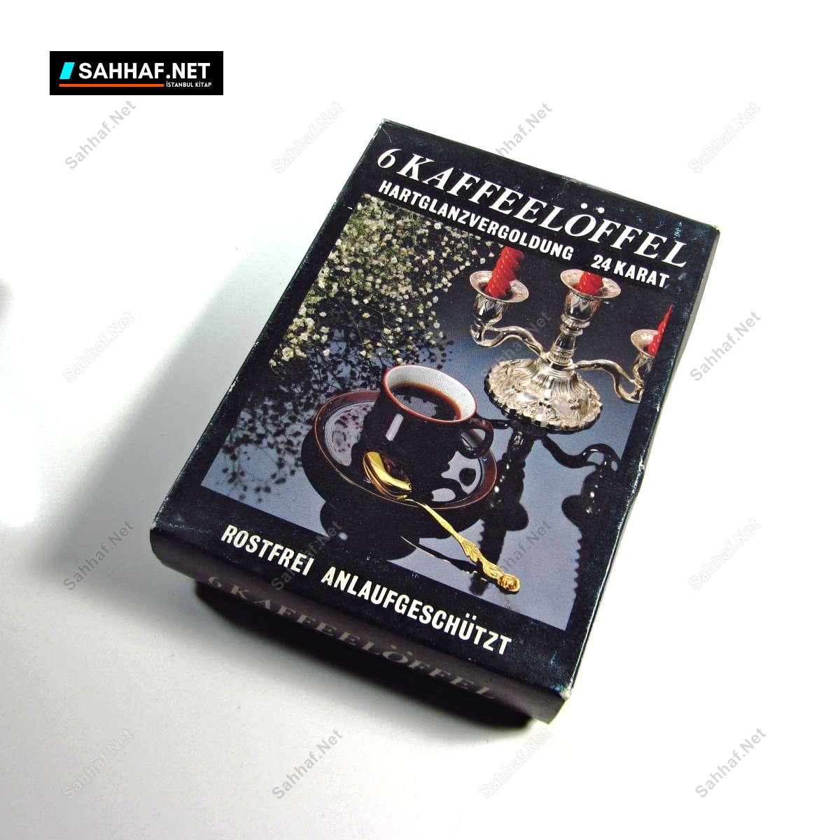 Batı Almanya döneminden, kutusunda, 6 adet altın kaplama tatlı kaşığı. Kullanılmamış, 24 ayar altın kaplama ve yaklaşık 50 yıllık vintage üründür. Koleksiyon veya mutfak kullanımı için düşünülebilir.