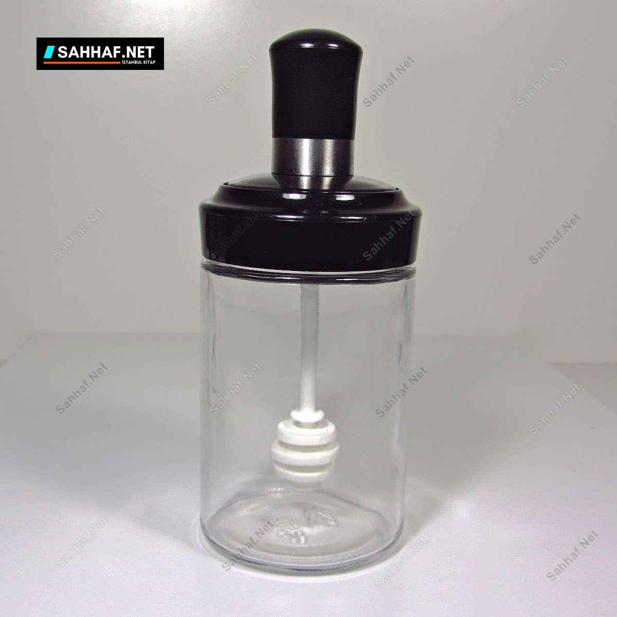 Bal kaşığı kendi kapağına tümleşik olarak tasarlanmış cam bal kavanozu. Kaliteli bir ürün, üst kapak burgulu değil, yerine koyunca toz almayacak şekilde üstünü kapatacak şekilde yapılmış. Kaşık kapağa monteli olduğu için balın içine düşme derdi yok, balı aldıktan sonra kaşığı nereye koyayım derdi yok, pratik bir kullanım sağlıyor. Cam malzemeden üretilmiş olması balın mineral değerini korumak açısından ayrıca önemli bir faktör. Yükseklik: 15 cm (tutma yeri dahil)
