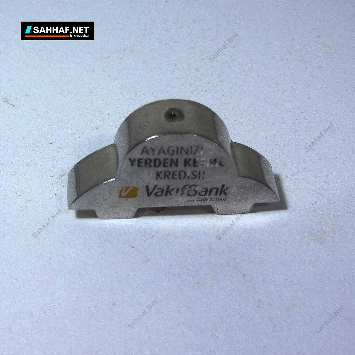 Krom kaplama bir otomobil figürü. Banka promosyonu, üzerinde minik bir delik var belki de anahtarlık olarak yapılmış. Halkası ve zinciri yok. Yükseklik: 1,7 cm