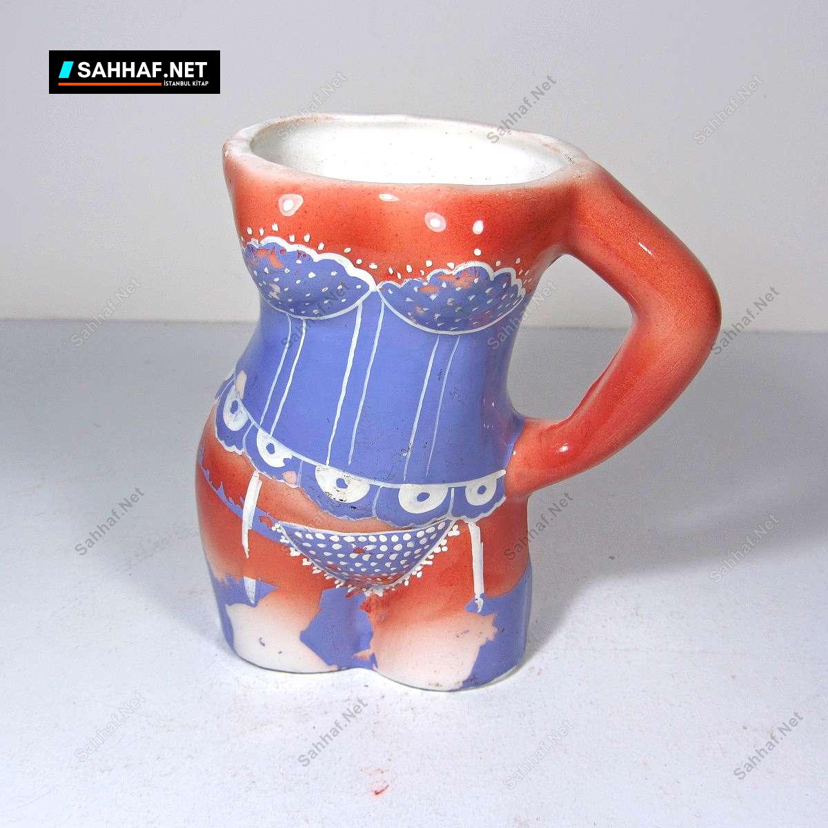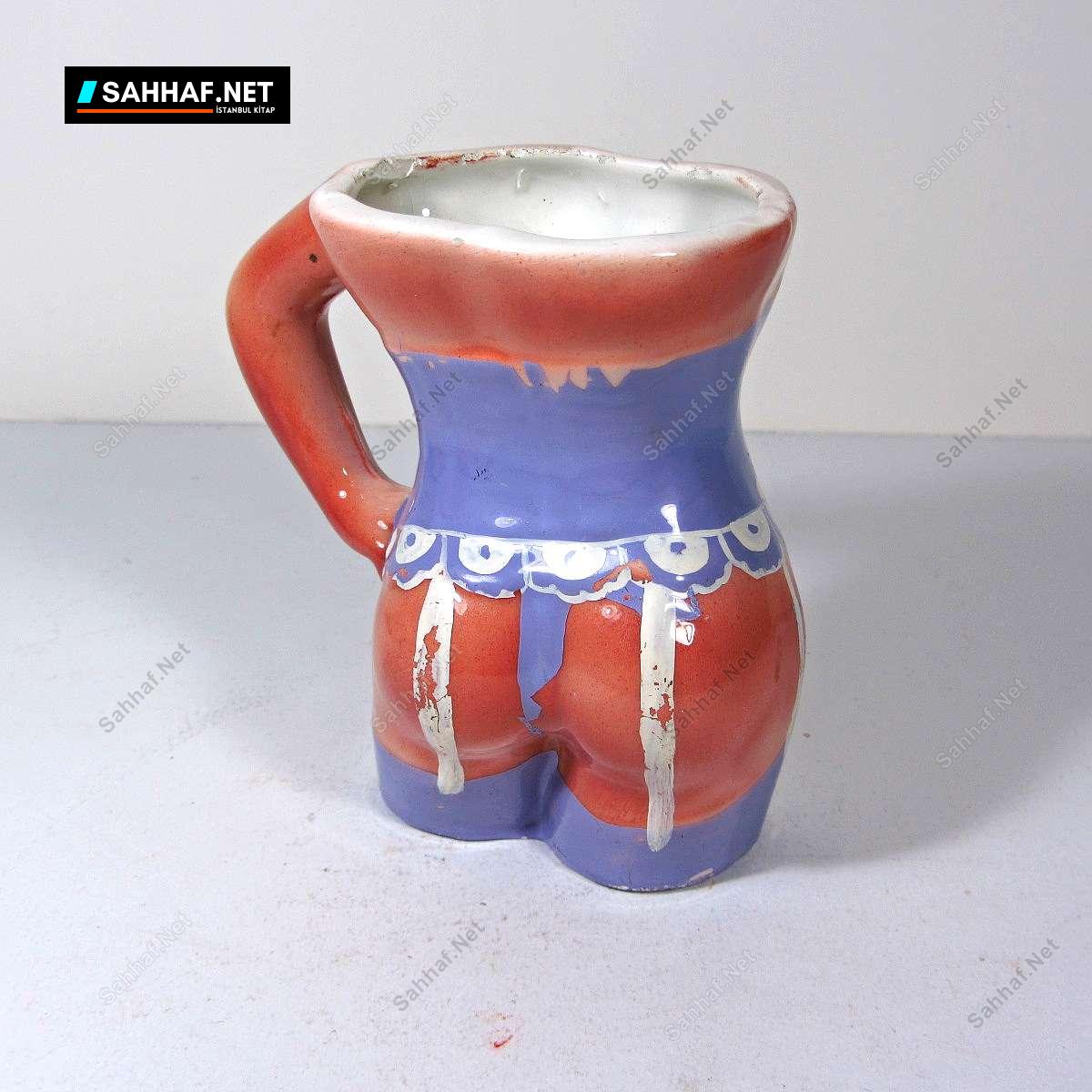 Jartiyerli kadın formunda ilginç bir porselen kupa. Çorap kısmındaki mor boyada biraz soyulma var. Bardak diye yazdık ama içi bir bardak gibi değil, kullanımdan ziyade koleksiyon amaçlı, belki saksı da olabilir. Yükseklik: 12 cm