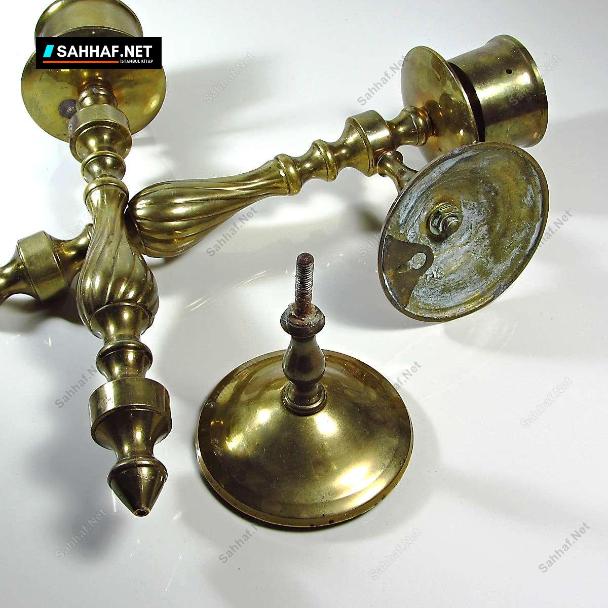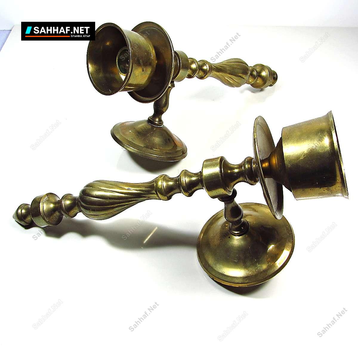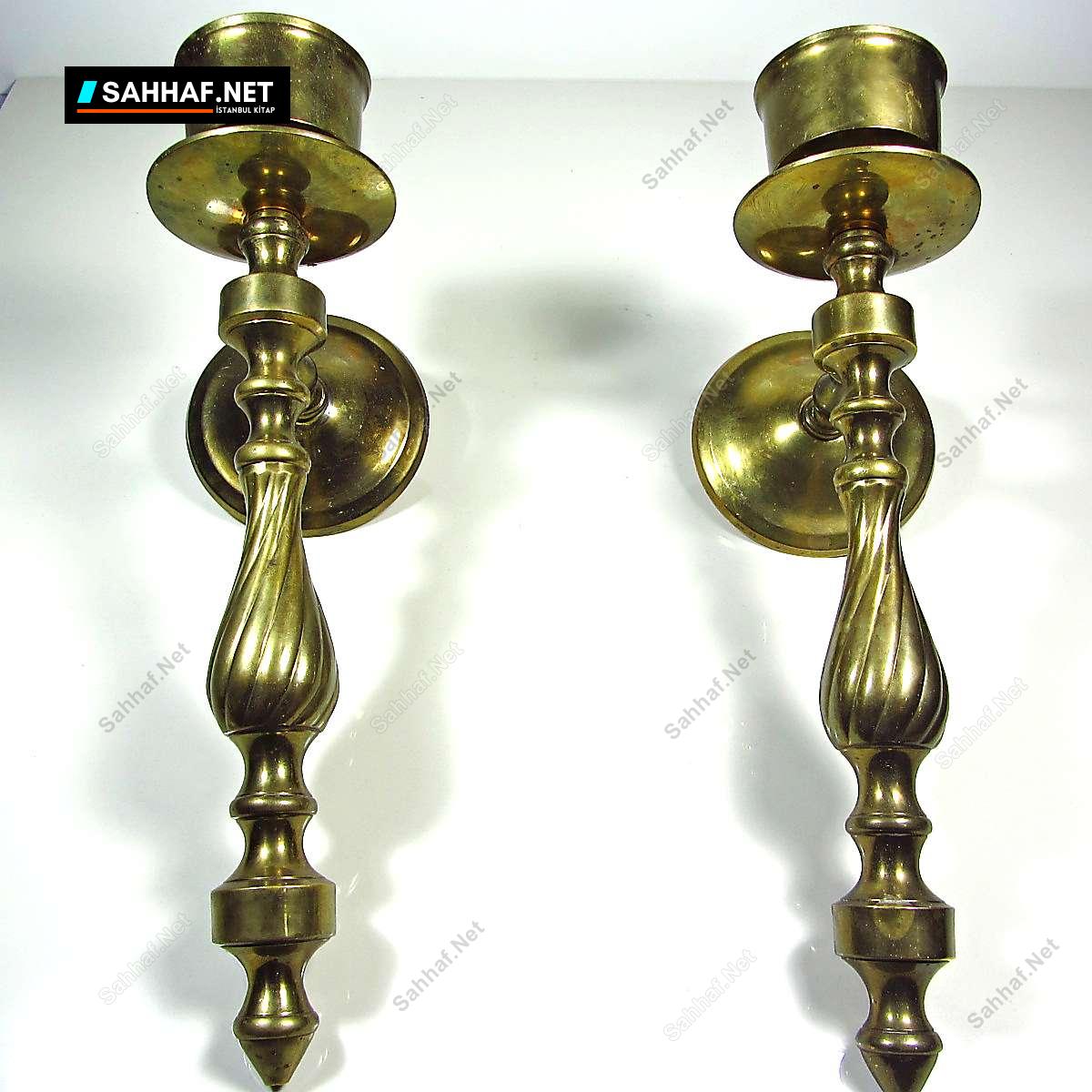 Harika görsellikte bir çift pirinç duvar apliği şamdan. Avrupa üründür ve son derece düzgün bir işçilikle yapılmış, pirinç malzemede alışageldiğimiz eciş bücüş bir ürün değil. Kullanacağınız ortama hem hava, hem değer katar. Herhangi bir kırık, fizik vs yok; yalnızca bir tanesinin vida burgusu hafif yalama olmuş, yerine sabitlerken vidanın etrafına kağıt mendil, streç film gibi sabitlenmesini sağlayacak bir destekle sıkıştırmanız lazım. Boy: 28 cm