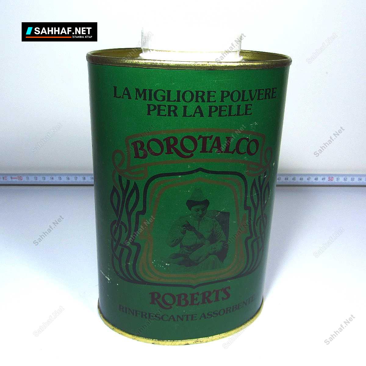 İtalyan üretimi talk pudra. Teneke kutuda, gramaj yazmadığı için tartamadık, sanırım 500 gramlık kutu, oldukça dolu, çok az kullanılmış olabilir. Yükseklik: 18 cm