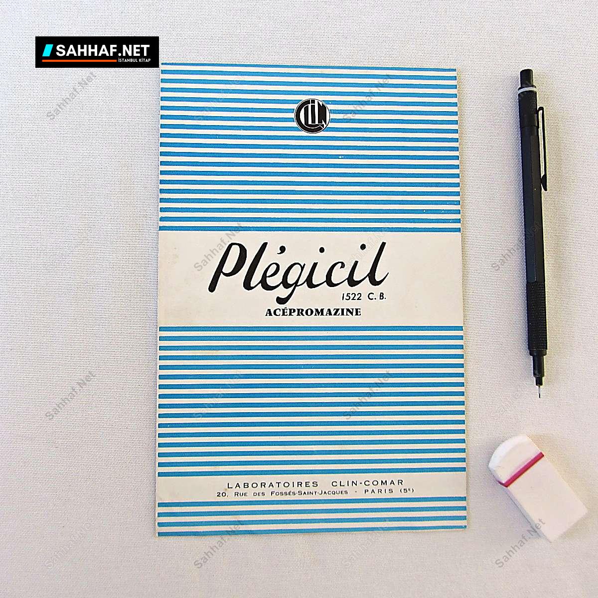 CLİN ilaç firması PLEGİCİL ilaç tanıtım broşürü. Türkçe, katlanır 2 yapraklıkuşe kağıdına benzer bir kağıdı var. 1950 veya 60’lar.