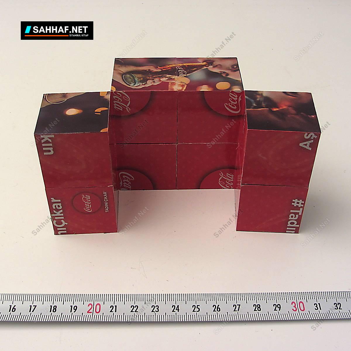 Coca Cola promosyonu çok enteresan koleksiyonluk küp şeklinde açılır kapanır bir obje. Her katlamada üzerindeki resim değişiyor.