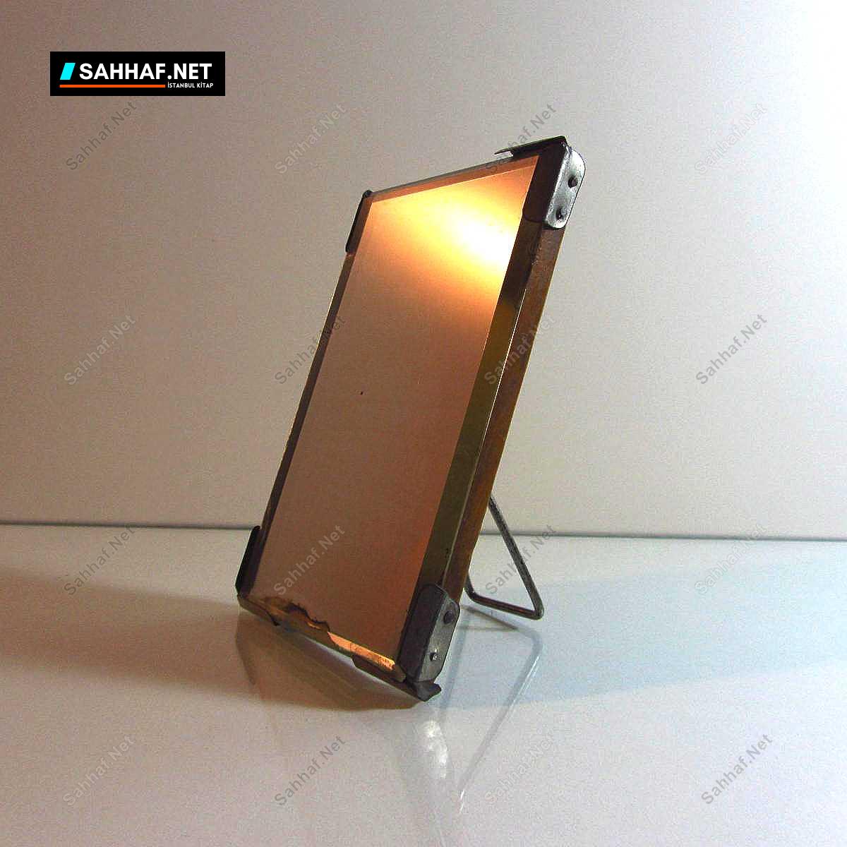 Oldukça eski ve kalın camdan yapılmış (6 mm) arkası ahşap ve gomalak cilayla cilalanmış, döneminin bir traş aynası. Durumu iyi, aynanın alt kısmında sır kısmına gelen gümüş soyulması var ve aynanın her kenarını tutan ikişer tutamaçtan biri eksik. Önemli kusurlar değil, yaşına göre durumu gayet iyi. Ebat: 15×10