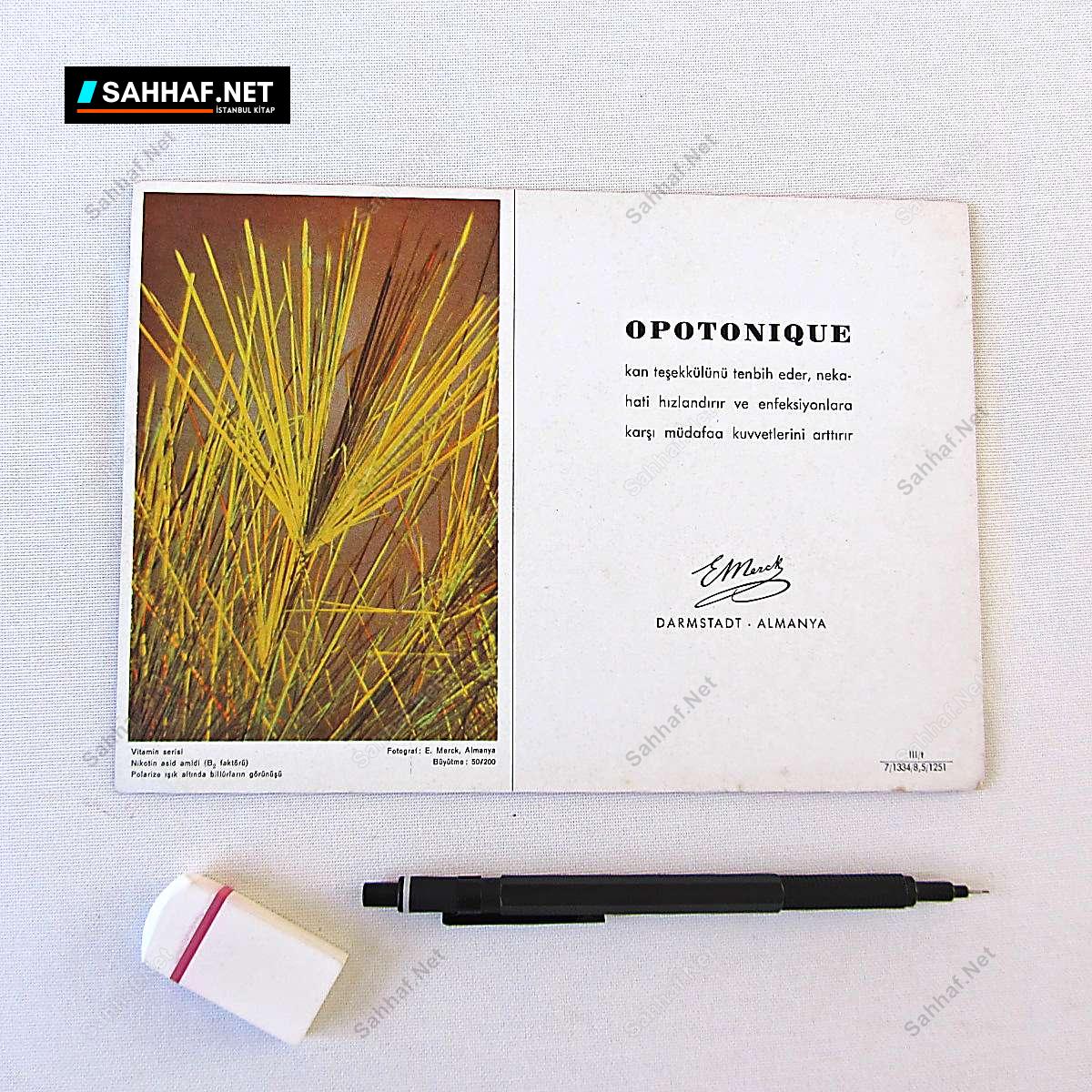 EMerck ilaç firması OPOTONIQUE ilaç tanıtım broşürü. Karton, 1950 veya 60’lar.