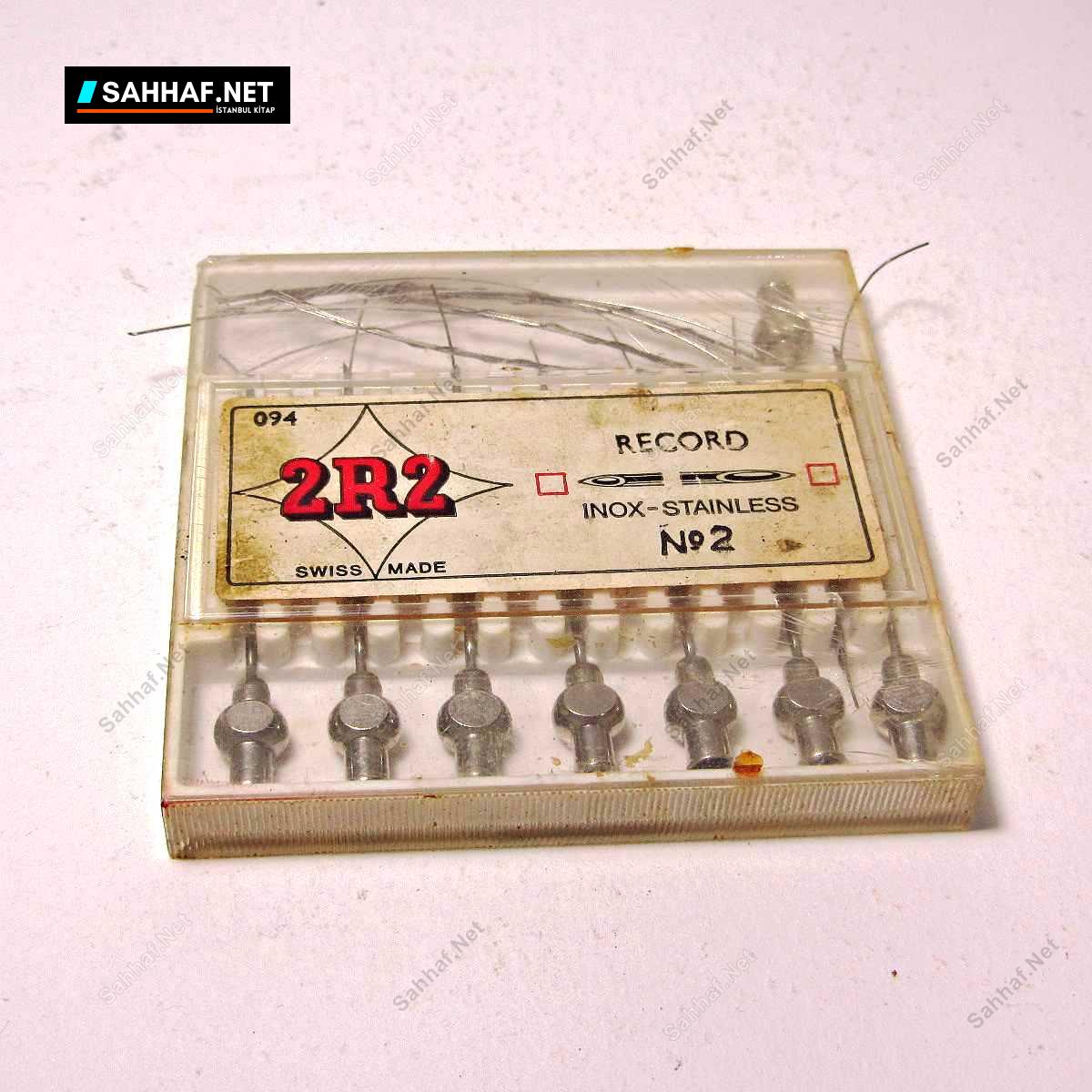 1 kutu (8 adet) İsviçre üretimi 2 numara paslanmaz çelik enjektör iğnesi. Kullanılmamış üründür, 2R2 markadır, İçini temizlemek için kullanılan çelik tel demeti de bulunmaktadır.