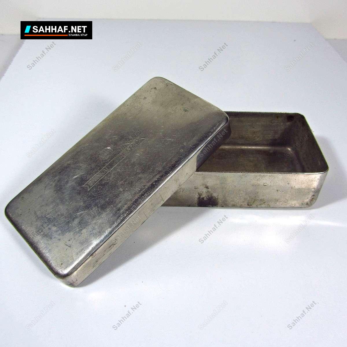 Paslanmaz çelik malzemeden enjektör kaynatma kabı. Kapak kısmında ORIGINAL RECORD yazısı gömme olarak yazılmış. Orta boy kutudur. Temizlenirse ilk günkü gibi olur. Boy: 11 cm