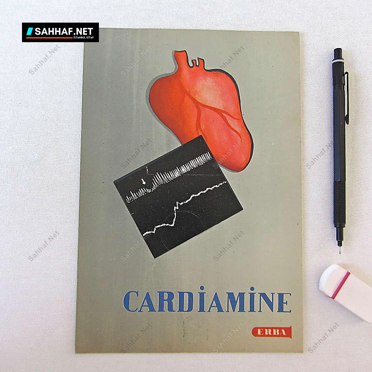 Erba ilaç firması CARDİAMİNE ilaç tanıtım broşürü. Üzerinde 1 kuruşlu ilan damgası var. 1950 veya 60’lar.