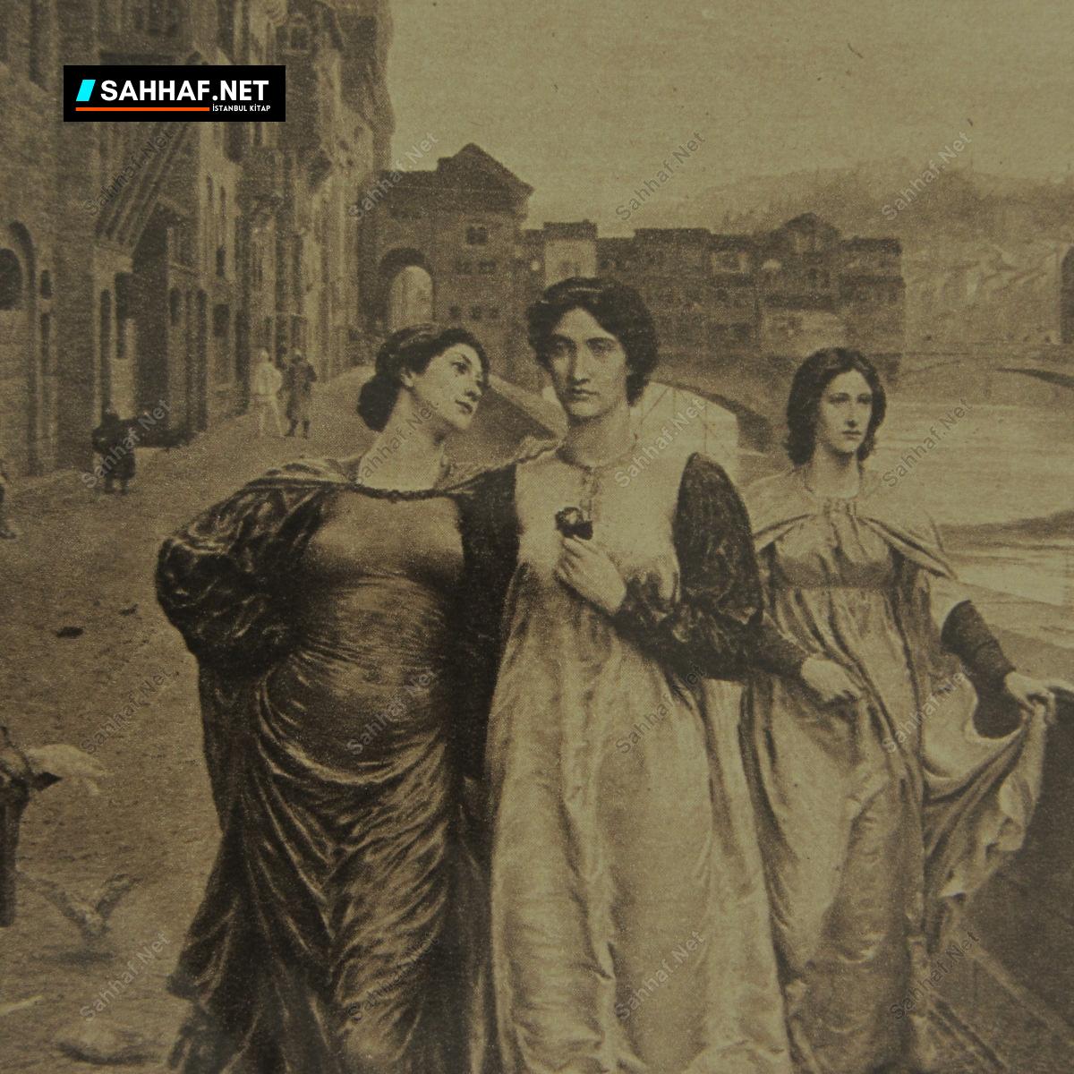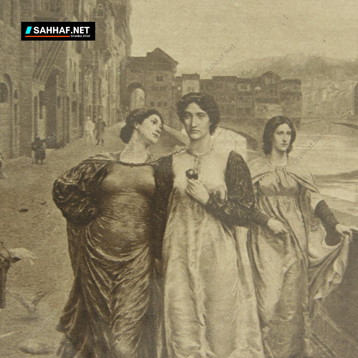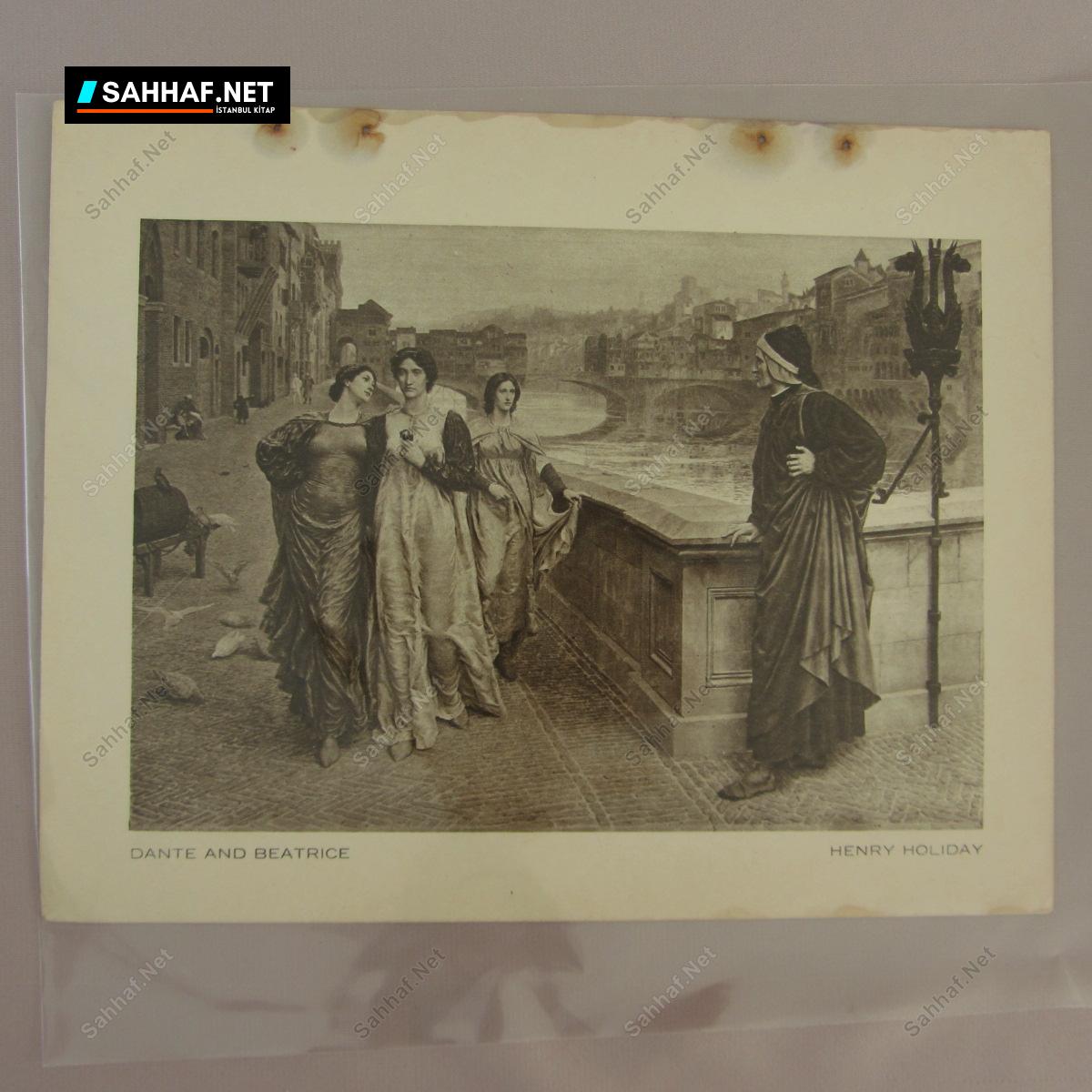 DANTE AND BEATRICE, Henry Holiday gravür resim. Oldukça eski, kitaptan çıkmadır. Kabaca 100 yıllık bir baskıdır.