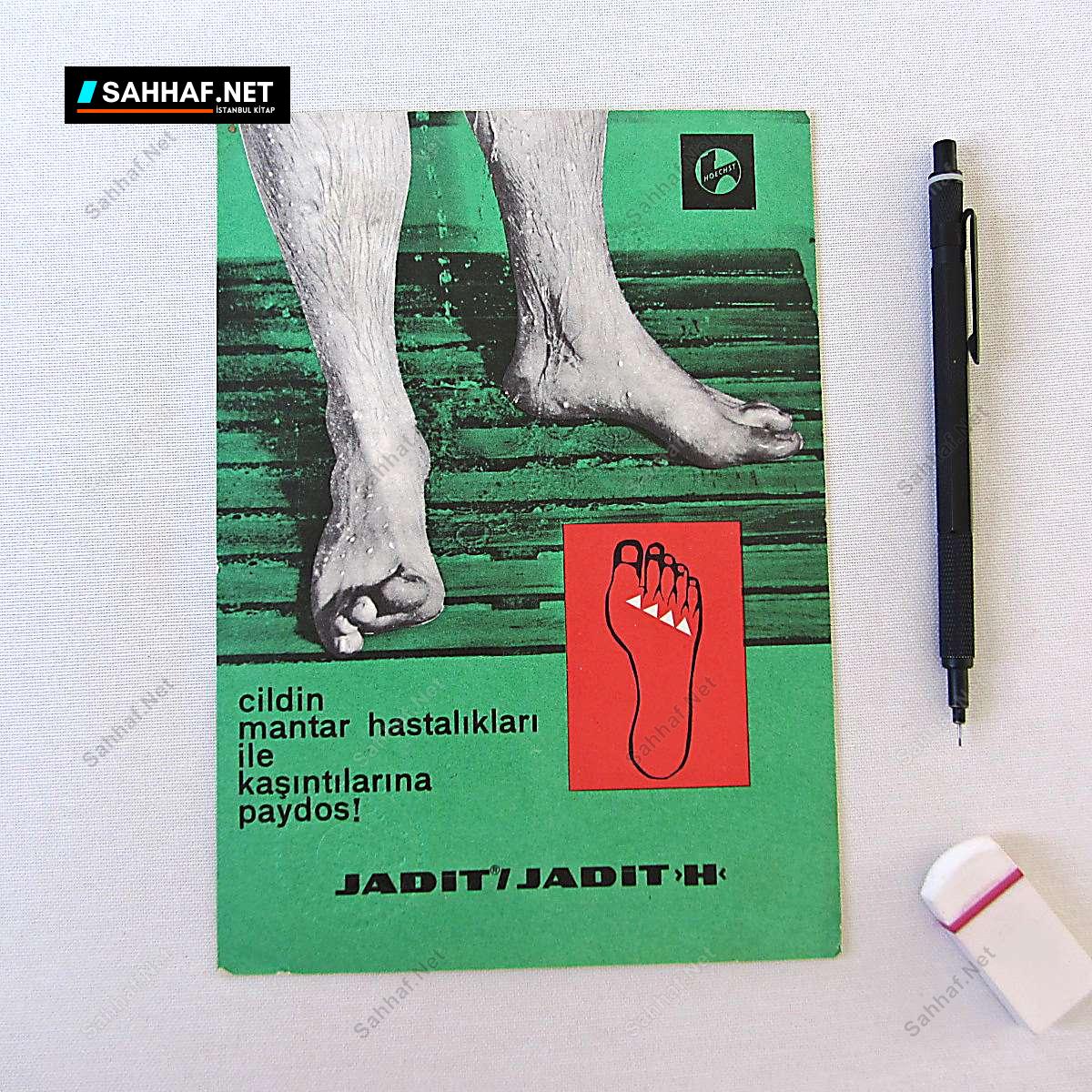 Hoechst ilaç firması JADİT/JADİT-H ilaç broşürü. Karton, postadan geçmiş, üzerinde 1 kuruşluk ilan damgası ve 10 kuruşluk posta damgası var.