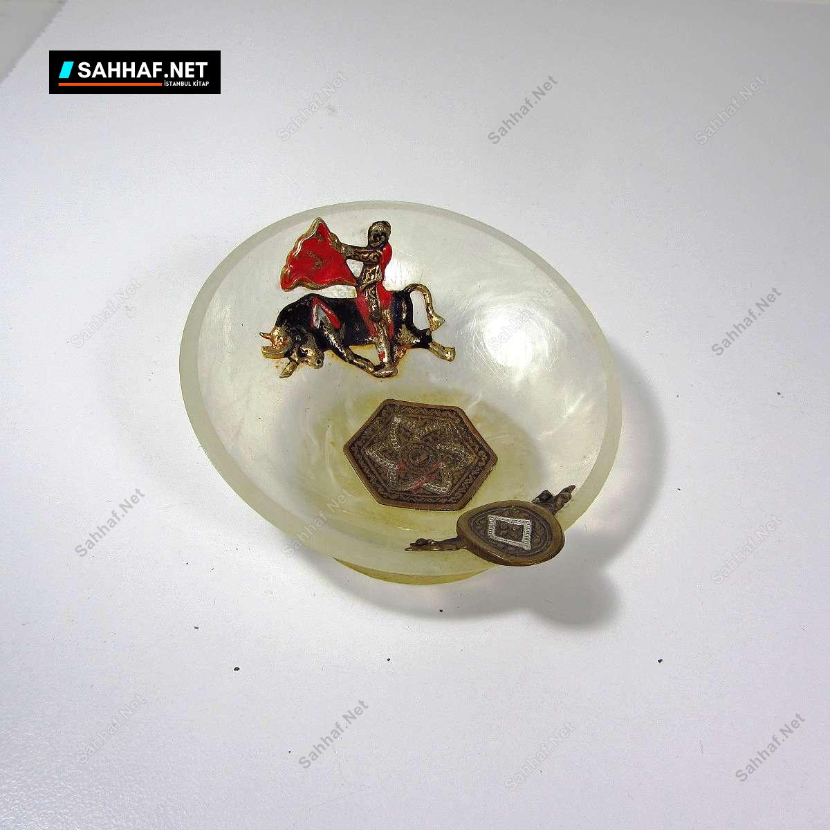 Matador figürlü İspanya hatırası güzel bir kül tabağı. Boğa, sigara standı ve sigara söndürme yeri pirinçten yapılmış. Gövde ve alt standı ise fiber benzeri yarı şeffaf bir malzeme. Sıradışı bir küllük. Çap: 8 cm