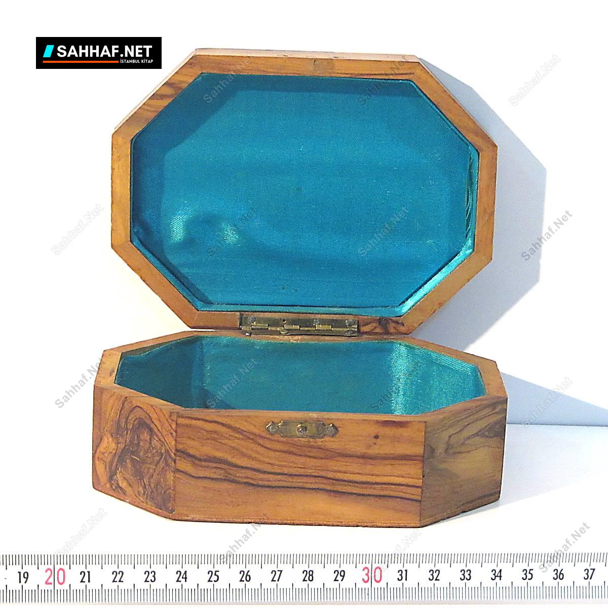 1970’lerden masif ahşap bir kutu. Zeytin ağacına benziyor, damarlı güzel desenli kalite bir parça. Kilit mekanizmasının bir parçası yok, önemli bir eksik değil.