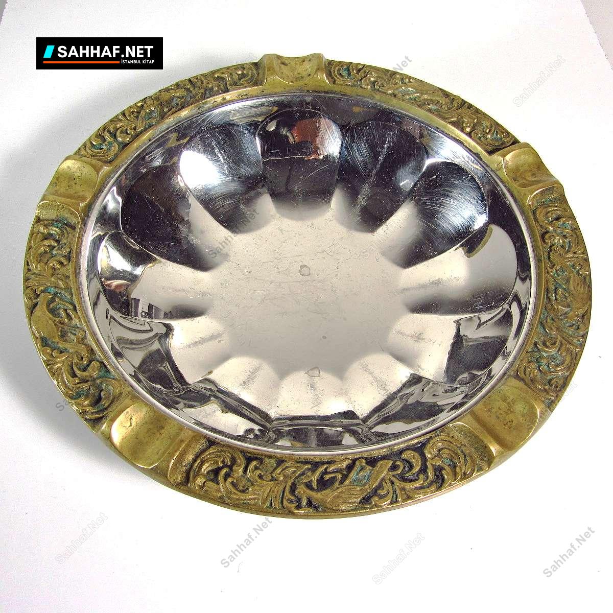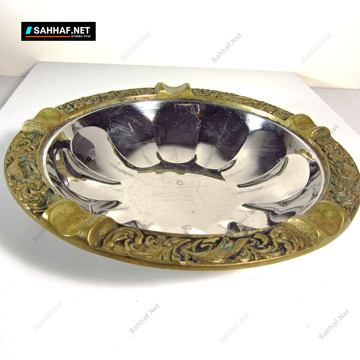 Pirinç ve paslanmaz çelikten yapılmış enteresan bir kül tabağı. Modernle klasiğin buluşması gibi olmuş, ve yakışmış. İçine monte edilen tabak da çok güzel, güzel geometrik bir desene sahip ve nikelajı çok kaliteli, neredeyse yeni gibi duruyor. Etrafında ise kabartma desenli pirinç malzemeden güzel bir desen dönüyor. Bu tarzı ilk defa görüyorum. Çap: 20 cm
