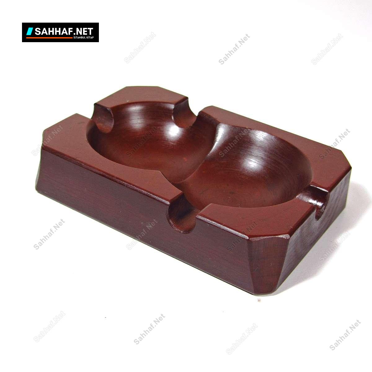 Kahverengi, tornada yapılmış çift hazneli ilginç bir küllük. İki kişinin beraber kullanabileceği şekilde düşünülmüş, estetik görünümlü bir ürün. Malzemesi ahşap gibi, fakat değil; plastik, fiberi andıran bir malzeme. Altında SARITAŞ damga var. Belki de tekil yapılmış, standart olmayan bir kül tabağına benziyor. Boy: 9 cm