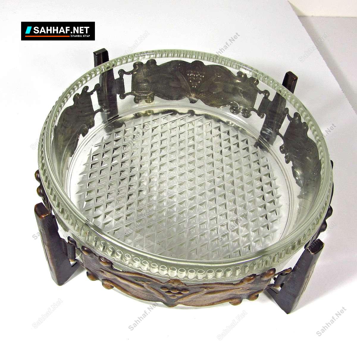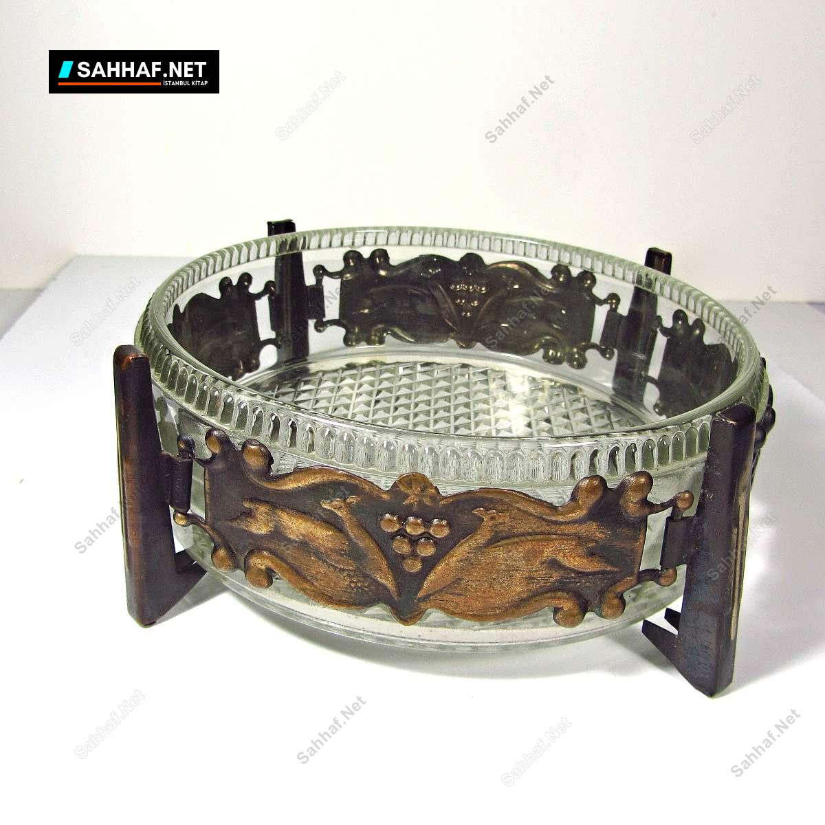 Etrafında taç şeklinde metal bir kemer dolaşan cam bir küllük ve/veya şekerlik. Her ikisine de benziyor veya o maksatla kullanılabilir. Metal bandın üzerinde koşan ceylan figürleri var. Dönem ürünüdür. Çap: 15 cm
