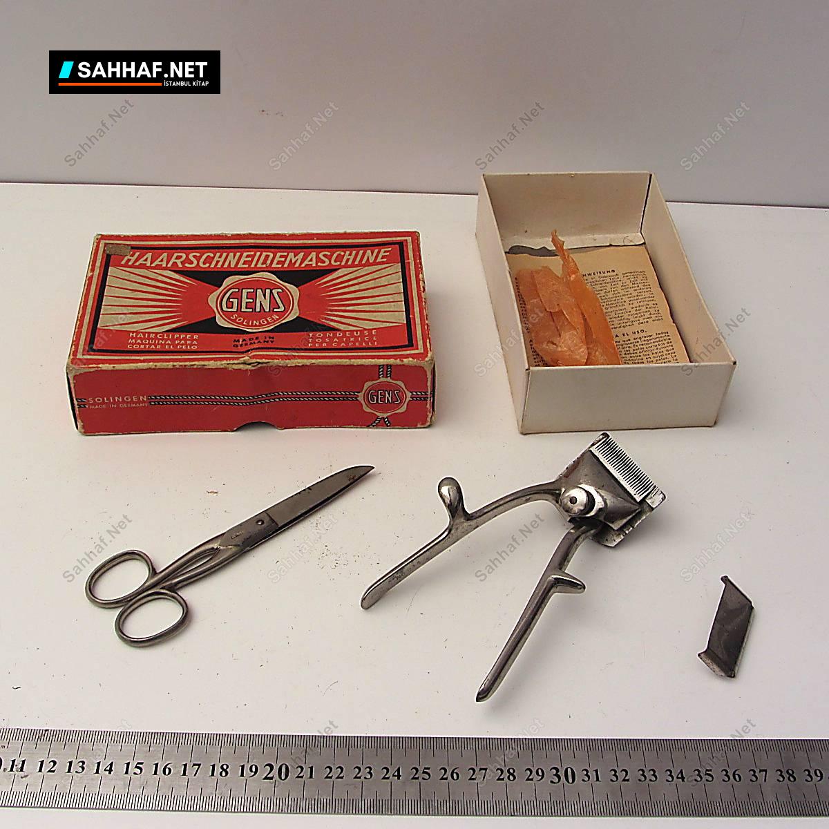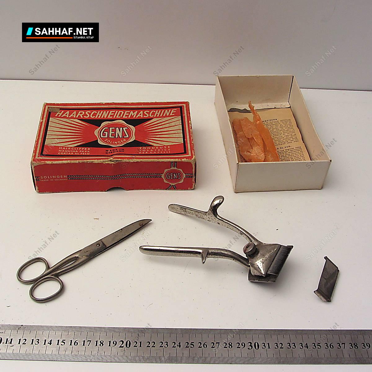 Küçük boy mekanik traş makinası. Kutusunda, Orijinal makasıyla beraber. Hafif paslanma var.