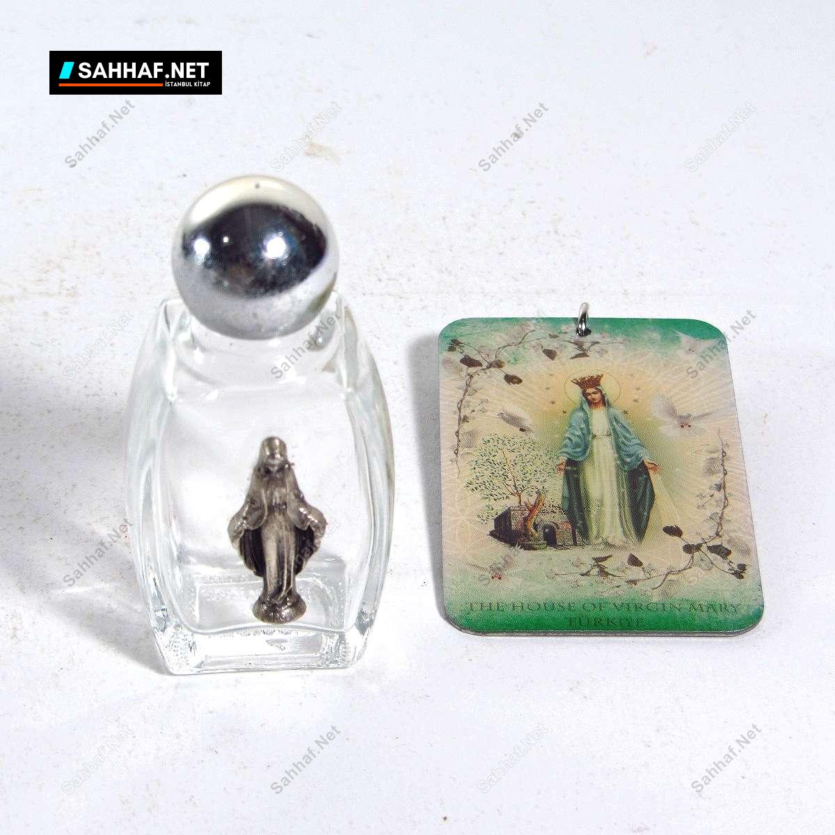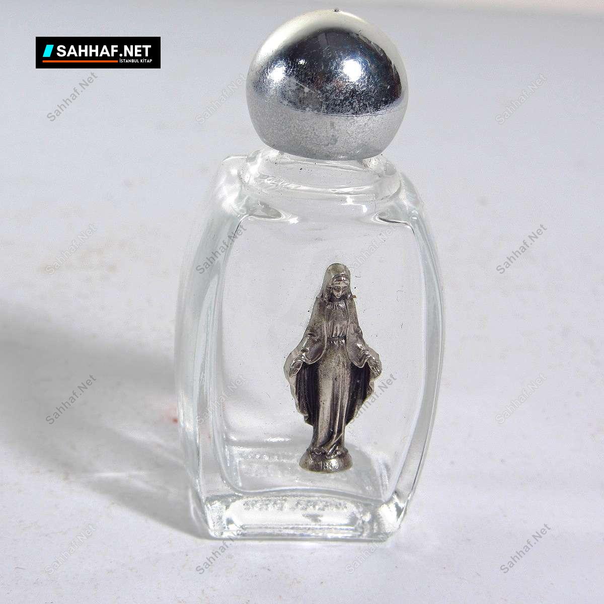 Üzerinde Mermer rölyefi bulunan küçük bir cam şişe. Muhtemelen esans şişesi, üst kapağı plastik, üzerindeki figür ise metal ve son derece ince detaylara sahip. Şişe oldukça küçük (6 cm) boyutlara sahip fakat üzerindeki figür inanılmaz güzellikte. Şişenin pek bir özelliği yok, ancak üzerindeki figür çok iyi. Yanındaki Meryem figürlü anahtarlık ise yanında hediye.