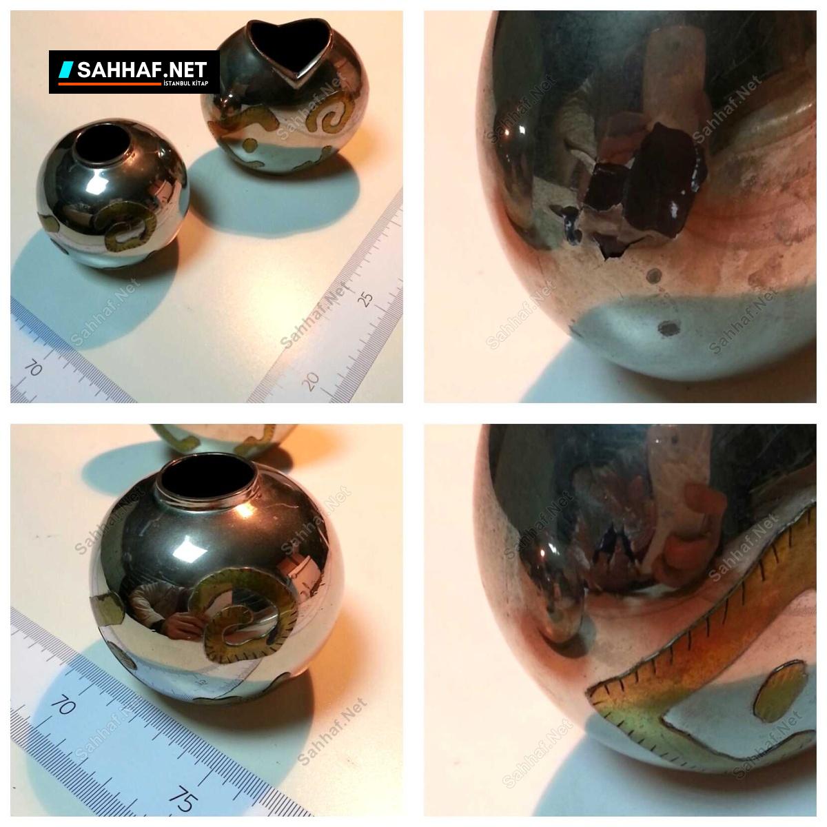 Büyük olanında 2 yerde ezik var, onu hediye ediyoruz, şık bir mini metal vazo