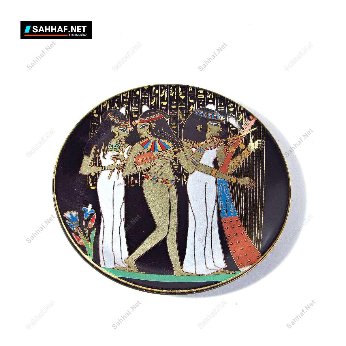 Çok kaliteli porselenden Mısır haırası dekoratif tabak. Üzerinde Mısır figürleri ve siyah rengiyle ağır bir duruşu var. Çap: 11 cm
