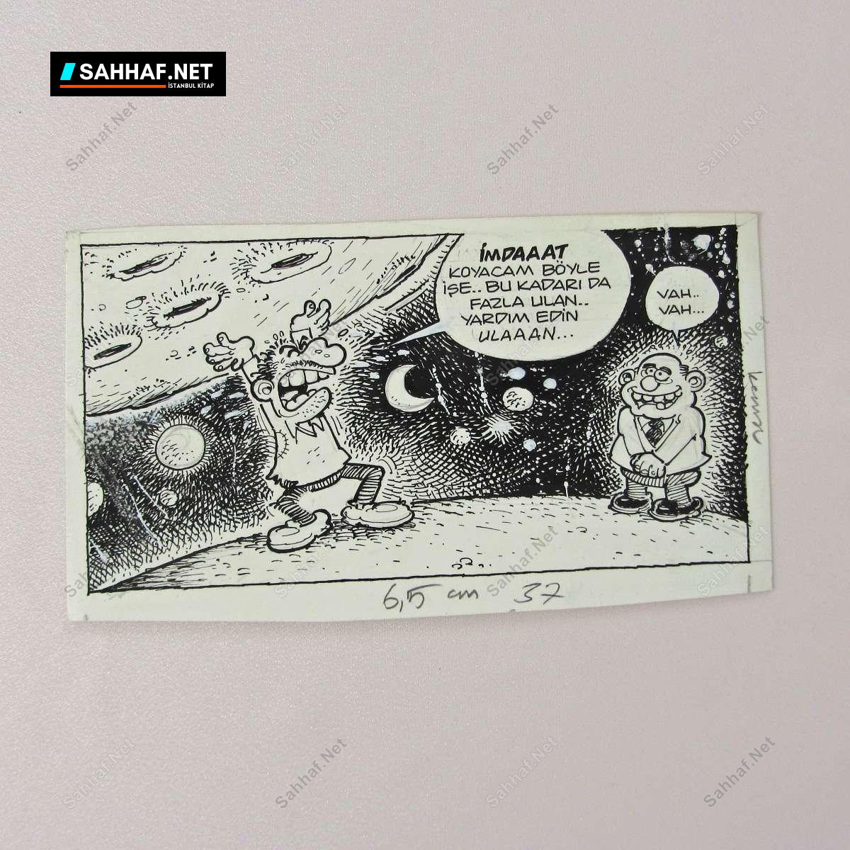 İmdaaat koyacam böyle işe.. Bu kadarı da fazla ulan.. Yardım edin ulaaan.. Karton üzerine çini mürekkebi, dergide yayınlanmış, el çizimi orijinal karikatür. 1980 sonları veya 1990 başları. (Belirtilen ebatlar karikatürün net ölçüsüdür)