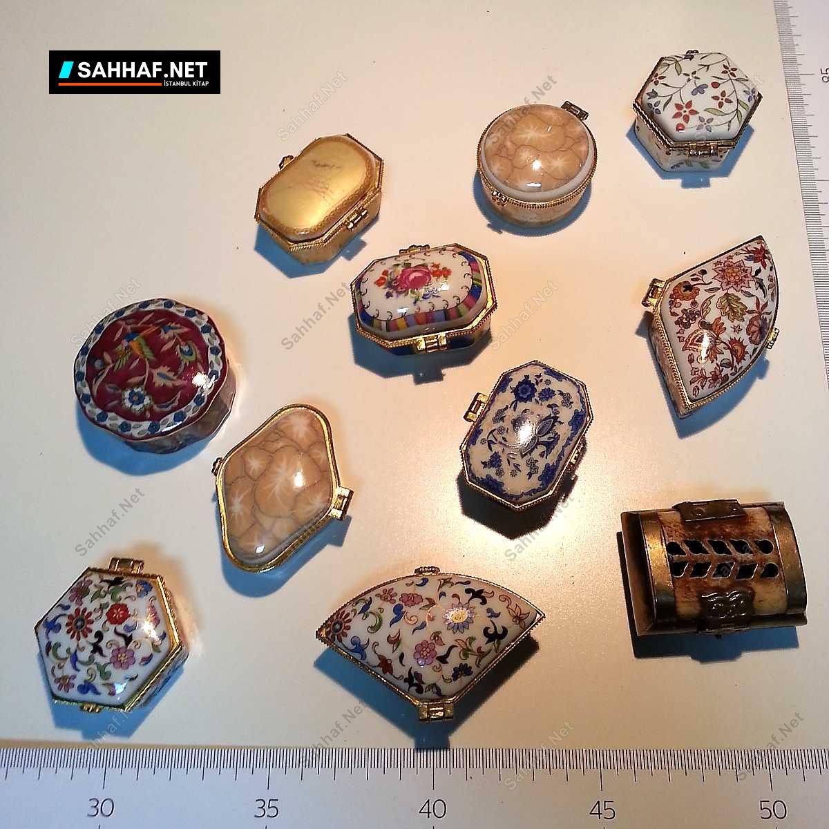 11 Adet mini kutu. Bir tanesi kemikten yapılmış, 1 tanesi de yapıştırıldığı için kusurludur.