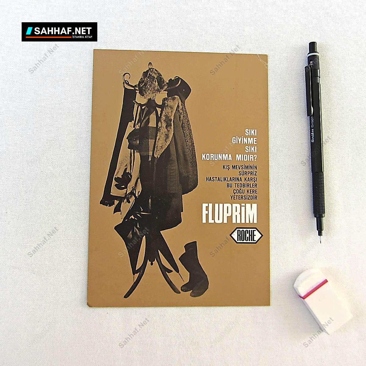 Roche ilaç firması FLUPRİM ilaç tanıtım broşürü.. Karton, 1950 veya 60’lar.