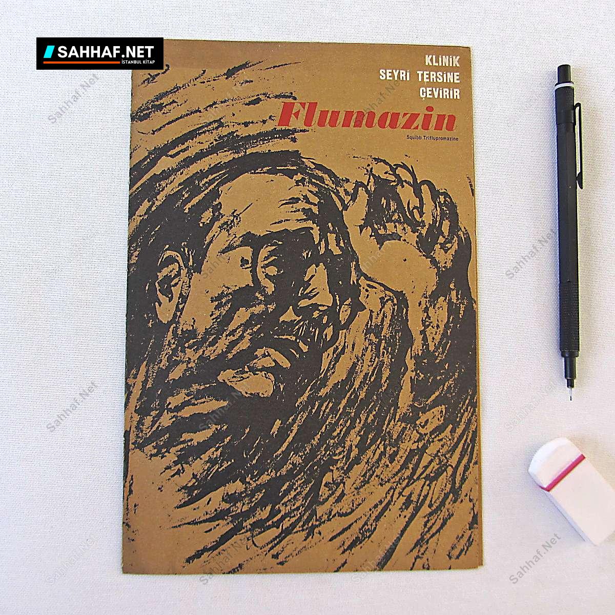 Squibb ilaç firması FLUMAZİN tanıtım broşürü. Açılır 2 yapraklı, karton, arkasında 1 kuruşluk damga ve 1 kuruşluk ilan pulu var. 1950 veya 60’lar.
