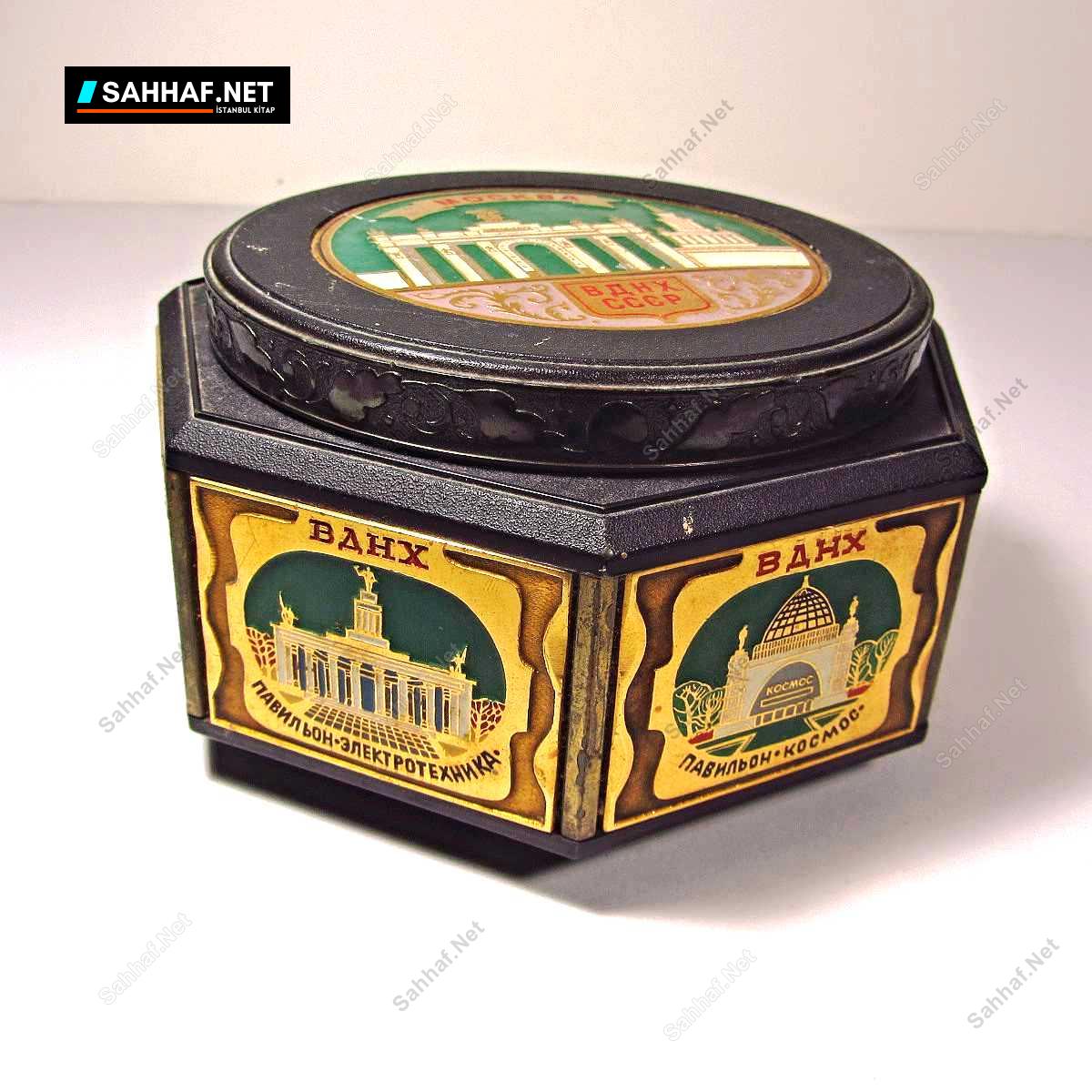 Sovyet dönemi müzik kutusu, kapağında ve etrafında mineli mekanlar işlenmiş. Kutu çok temiz, müzik de çalıyor; fakat mekanizma çok ağır döndüğü için müzik notalar şeklinde çok ağır geliyor. Eski bir üründür, mekanik bir mekanizmaya sahip olduğu için açılıp yağlanması gerekir, en az 30 yıldır yağlanmamıştır.