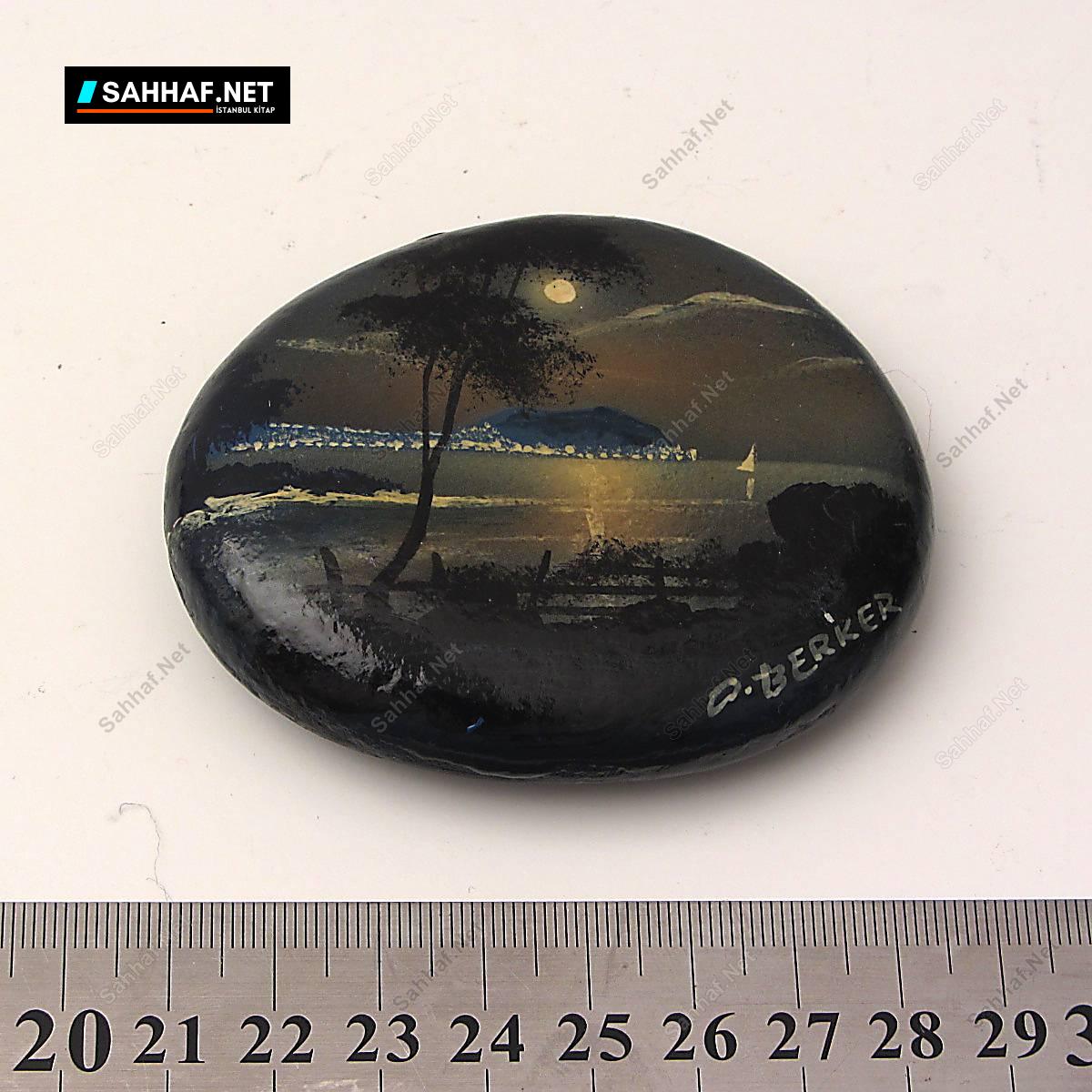 Çakıl taşı üzerine yapılmış yağlı boya tablo. Oldukça ilginç bir çalışma. Sanatçıdan imzalı.