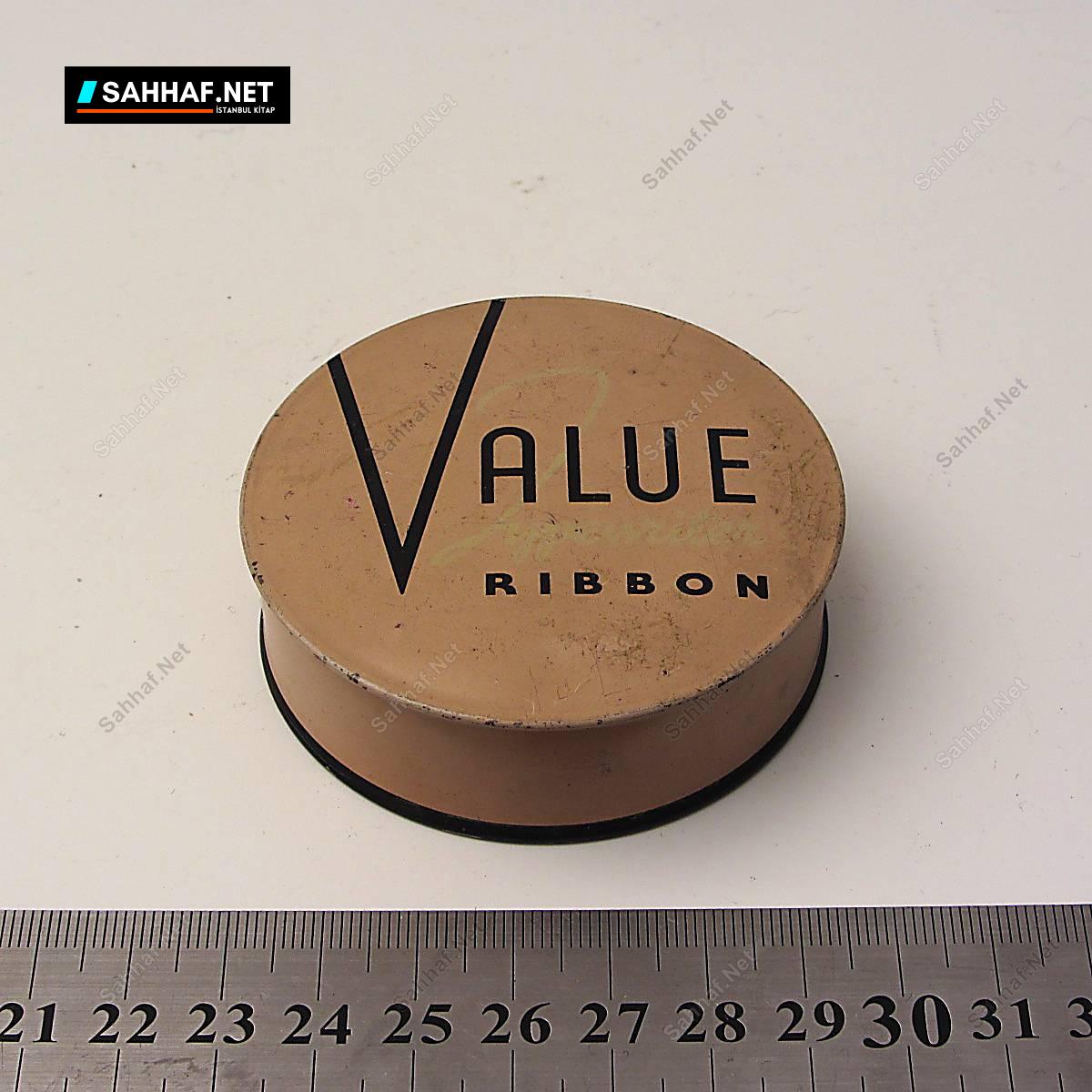 Daktilo şeridi teneke kutusu. Kutu boştur, içinde daktilo şeridi yoktur.