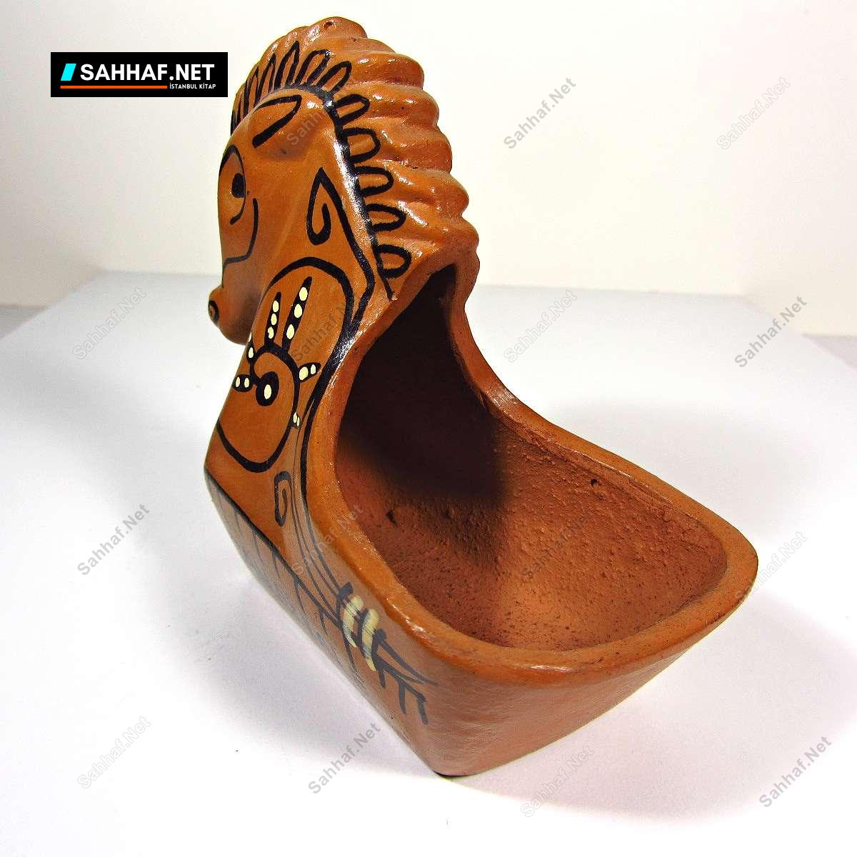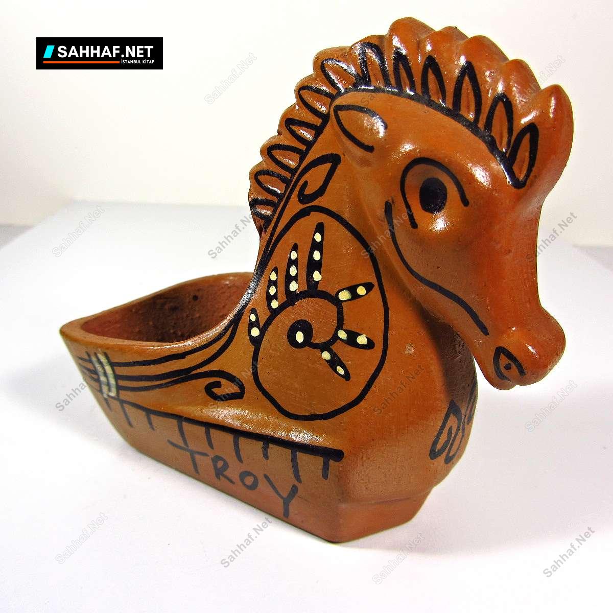 Çanakkale hatırası Truva Atı şeklinde yapılmış toprak küllük. Bir tarafında TROY, diğer tarafında ÇANAKKALE yazıyor. Eski, fakat kullanılmamış üründür. Yükseklik: 11cm